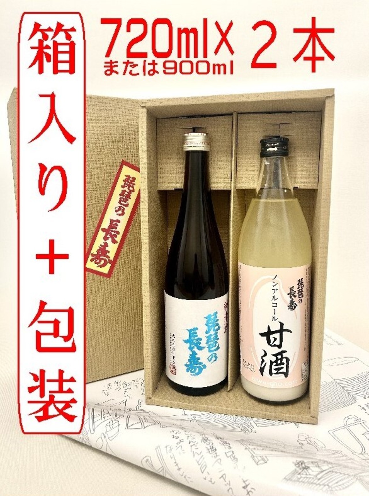ご購入いただいた2本をカートンに入れて 包装紙で包み、進物仕様にします。
